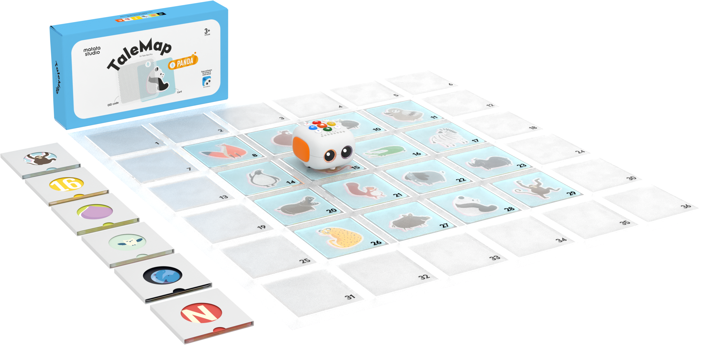 Crea mapas y escenas OID interactivas y diseña tu propio escenario con un mapa definible 6×6 en conjunto con MatataCode (Tale-Bot Pro).